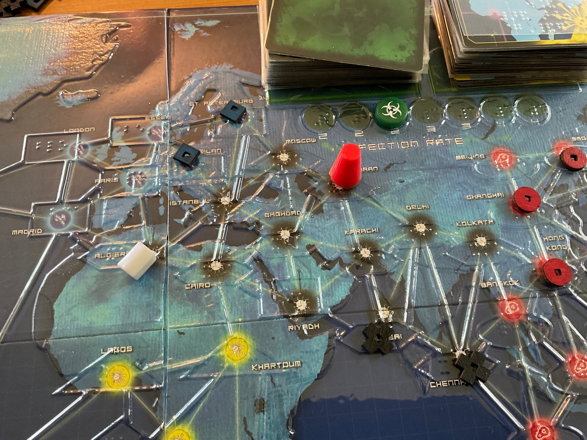 In Pandemic, several virulent diseases have broken out simultaneously all over the world! The players are disease-fighting specialists whose mission is to treat disease hotspots while researching cures for each of four plagues before they get out of hand.